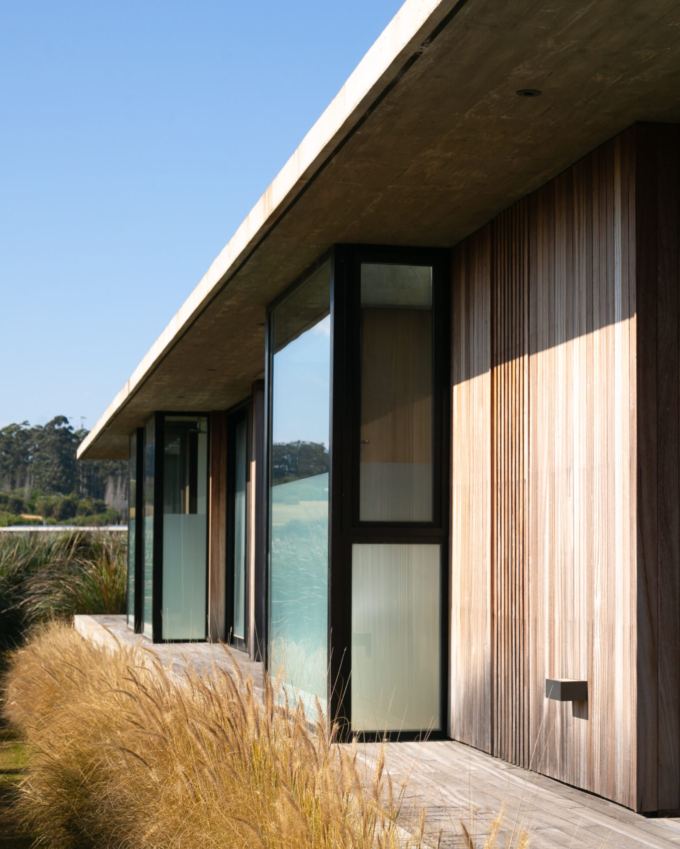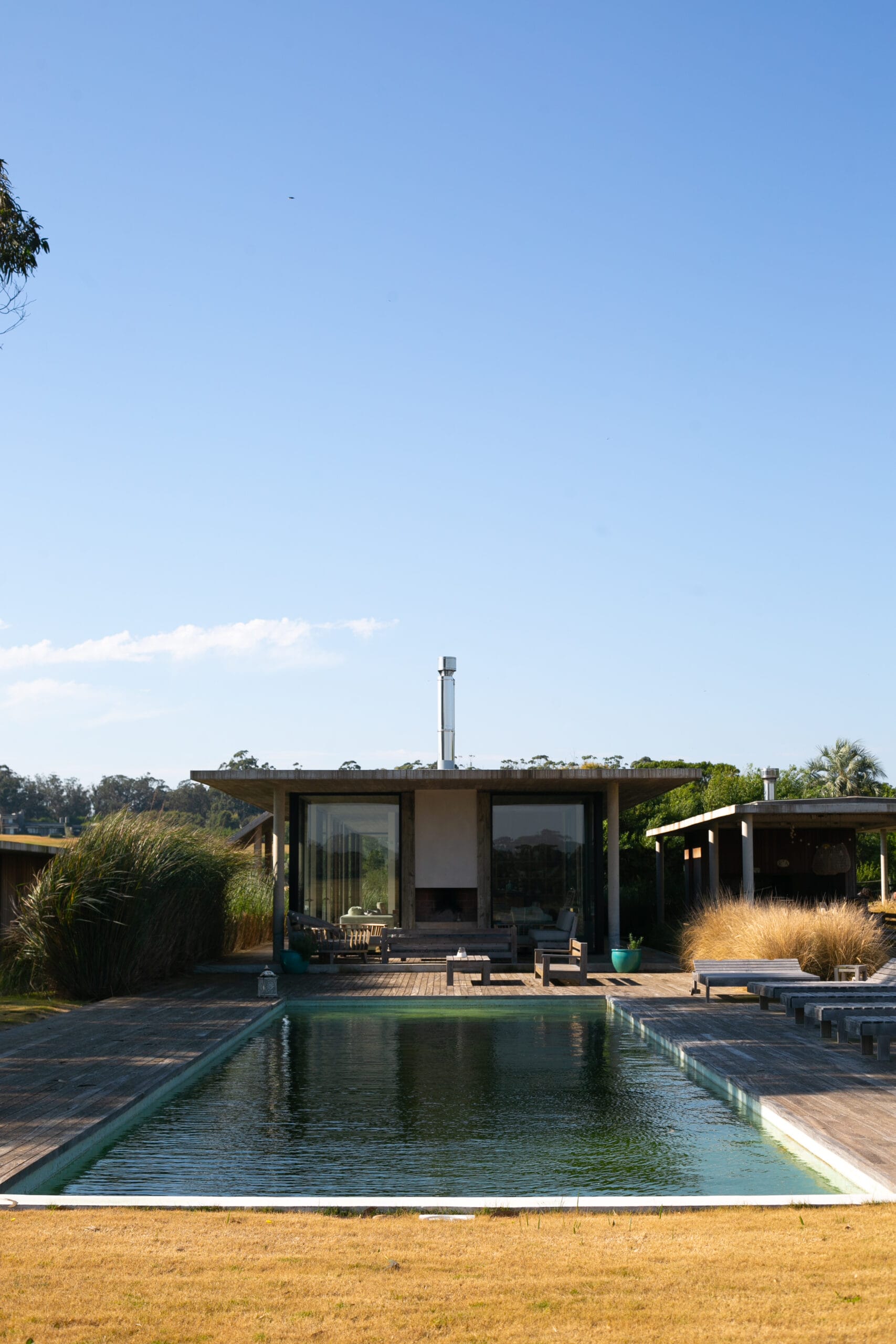 Ubicada en un amplio y sereno campo, Belloso es una residencia que fusiona de manera sublime la calidez de la madera con la transparencia del vidrio, creando un ambiente de armonía perfecta con el paisaje natural que la rodea. Esta casa de una sola planta, cuidadosamente diseñada, se divide en tres pabellones independientes conectadas por un sendero exterior que invita a disfrutar del aire libre y la tranquilidad del espacio abierto. Los ventanales amplios permiten que la luz natural fluya de manera orgánica, integrándose en cada rincón y proporcionando vistas despejadas hacia el entorno rural. La estructura de madera confiere un carácter acogedor, mientras que los detalles en vidrio añaden un toque de modernidad, creando un equilibrio perfecto entre lo tradicional y lo contemporáneo.
