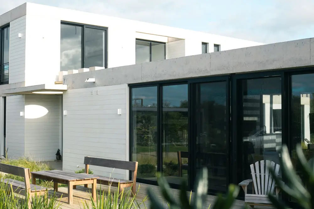 Esta impresionante residencia de dos plantas combina con maestría el diseño contemporáneo con detalles arquitectónicos distintivos, creando un hogar que es tanto sofisticado como acogedor. Su fachada de madera pintada de blanco y hormigón claro, realzada por elegantes detalles en acero negro, le otorga un carácter moderno y atemporal. Los amplios ventanales permiten que la luz natural inunde los interiores, generando una atmósfera cálida y una conexión fluida con el exterior. Cada detalle de esta residencia ha sido pensado para ofrecer comodidad, estilo y exclusividad, en un diseño que combina líneas modernas con materiales cálidos y una distribución funcional.