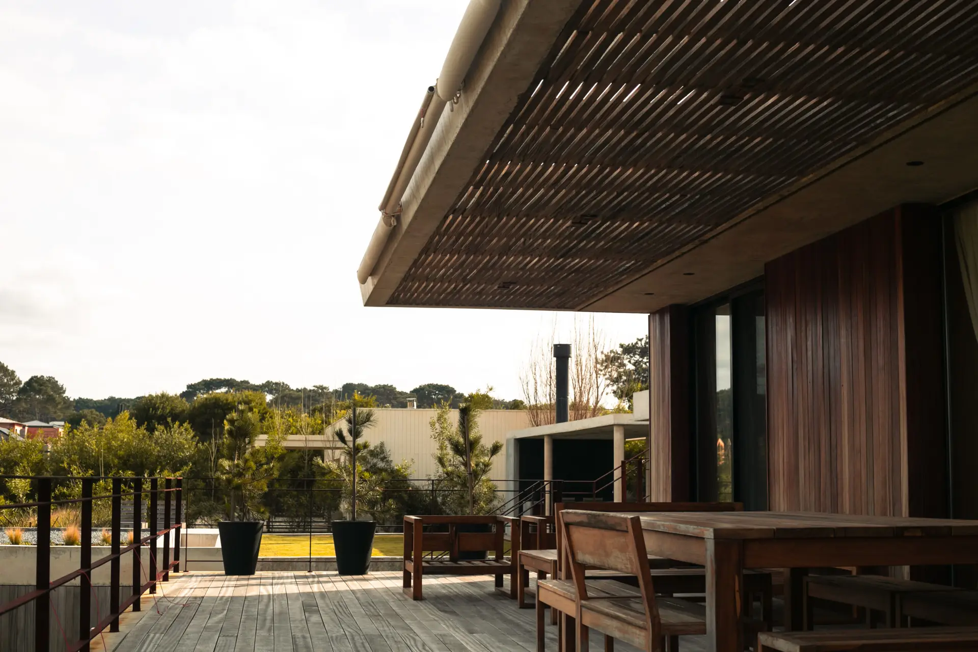 Ubicada en un exclusivo barrio privado cerca de la playa, esta impresionante residencia de dos plantas combina con maestría la calidez de la madera de lapacho con la solidez y modernidad del hormigón, logrando un equilibrio perfecto entre la elegancia y la funcionalidad. Desde el primer nivel, la casa se abre hacia un amplio patio, un espacio diseñado para el descanso y el entretenimiento al aire libre. Una espectacular piscina invita a disfrutar los días soleados en un entorno de privacidad y confort. Cada detalle de esta casa ha sido pensado para quienes buscan exclusividad, diseño y calidad de vida, en un entorno seguro y privilegiado cerca del mar.
